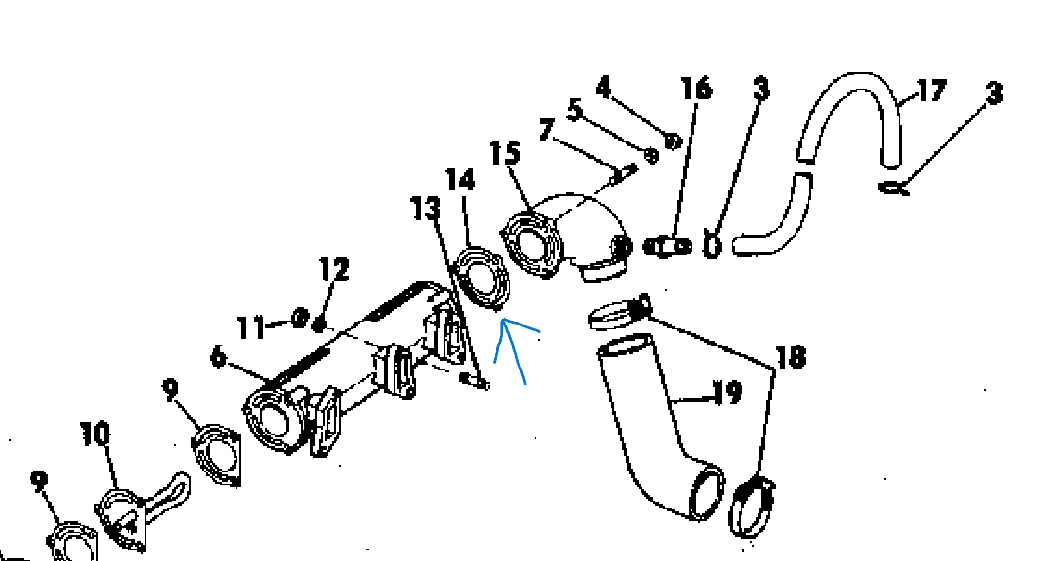 This gasket fit between the exhaust manifold and exhaust elbow on V-6 and V-8 OMC Stringer engines from 1968 thru 1971.