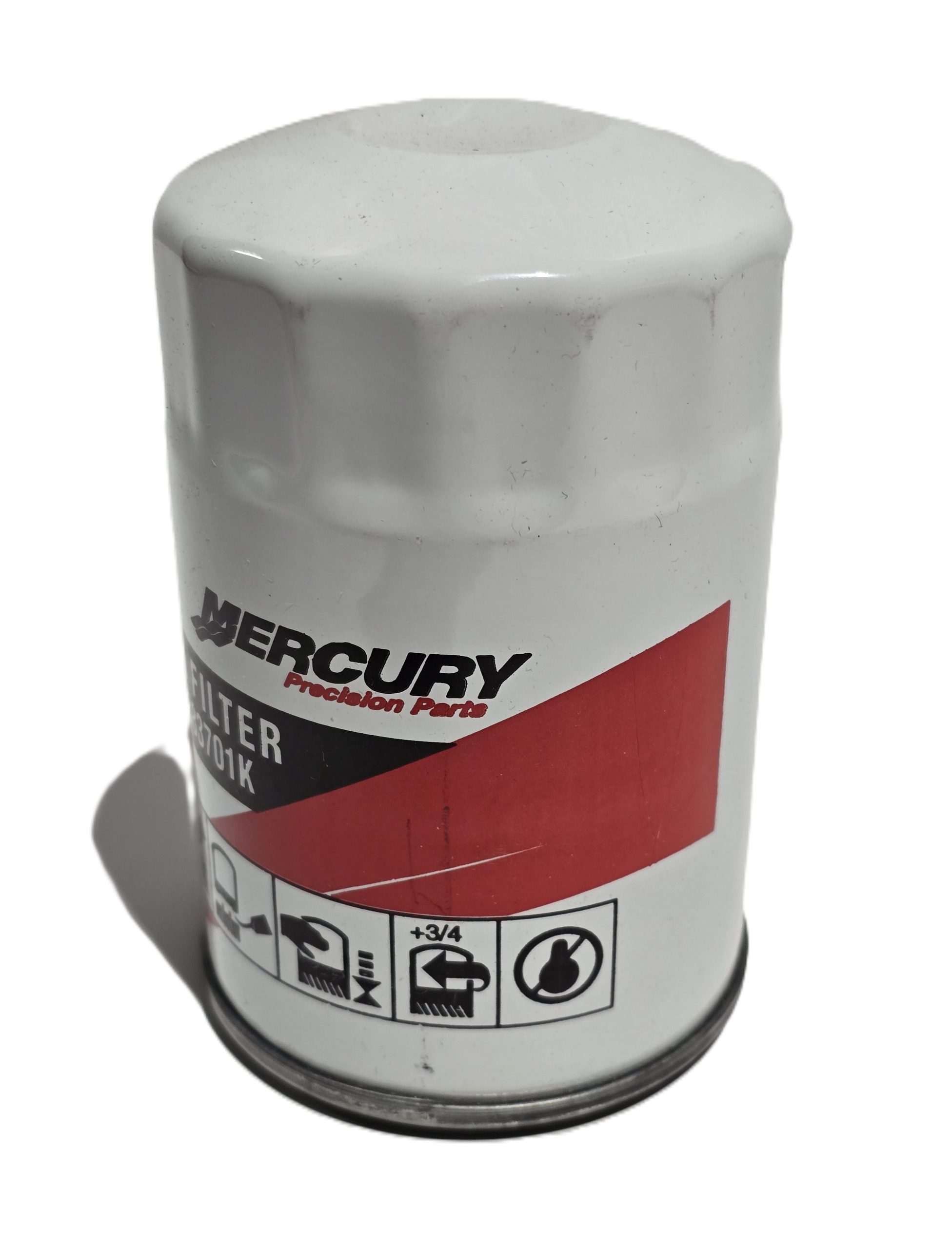 Replacement oil filter 877769K01 is for use on 200-400R Mercury Verado in-line, 6-cylinder outboards. Change your oil at least once each year and as your owner’s manual recommends based on hours of use. It’s easy to unscrew the used filter and replace it with a new, clean filter. Periodic maintenance and service helps protect your investment in your engine.