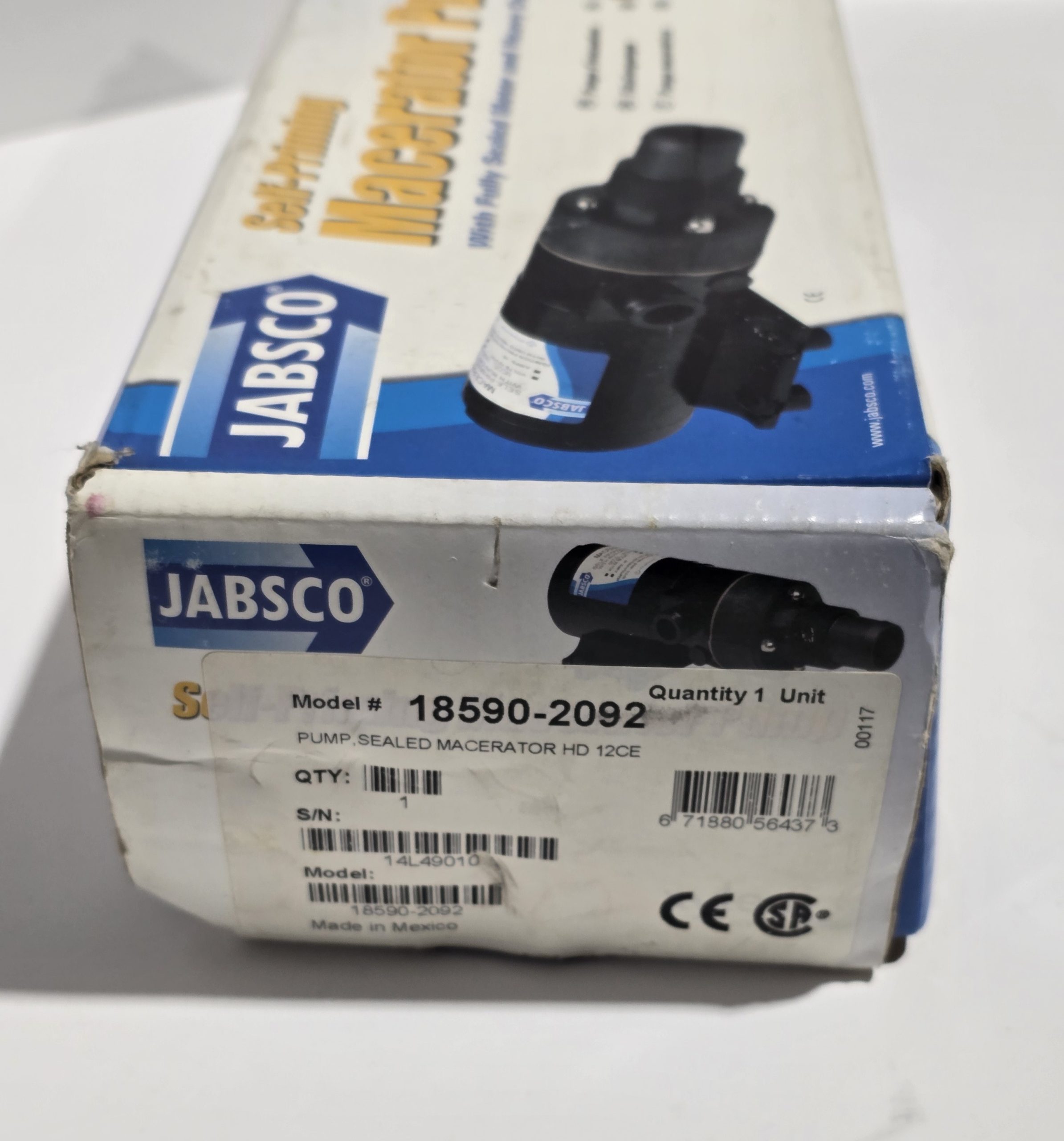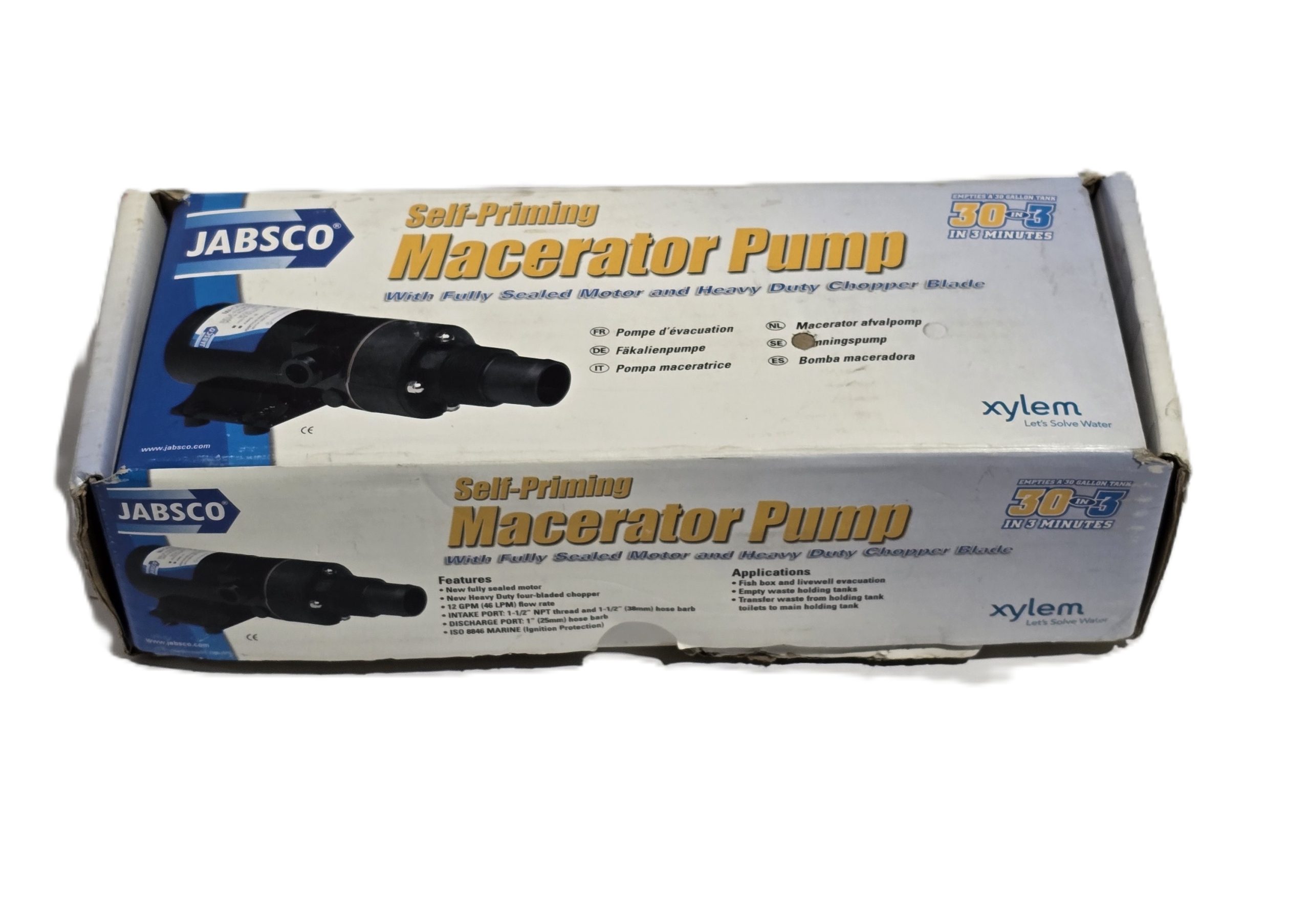 The Jabsco 18590 Series DC Macerator Pump is designed to empty marine holding tanks, such as fish boxes and livewells, when not in a discharge restricted area. It is self priming to 5′ and will empty a typical 30 gallon tank in under 3 minutes. This pump features a permanent magnet motor type that is fully enclosed with a stainless steel shaft, and includes Run-Dry Protection Device that shuts off the pump. It also has a powder coated housing with sealed end bells and bearings. The macerator has a stainless steel cutter to reduce particle size to 1/8″ for easy discharge. Complies with USCG Regulation 183.410 and ISO 8846 MARINE for Ignition Protection.