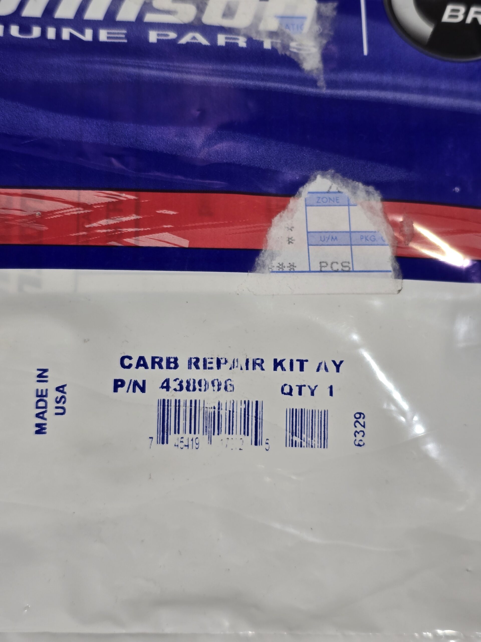 This is a complete OEM carb repair kit new in the package. It fits many V-4 and V-6 Johnson and Evinrude engines.